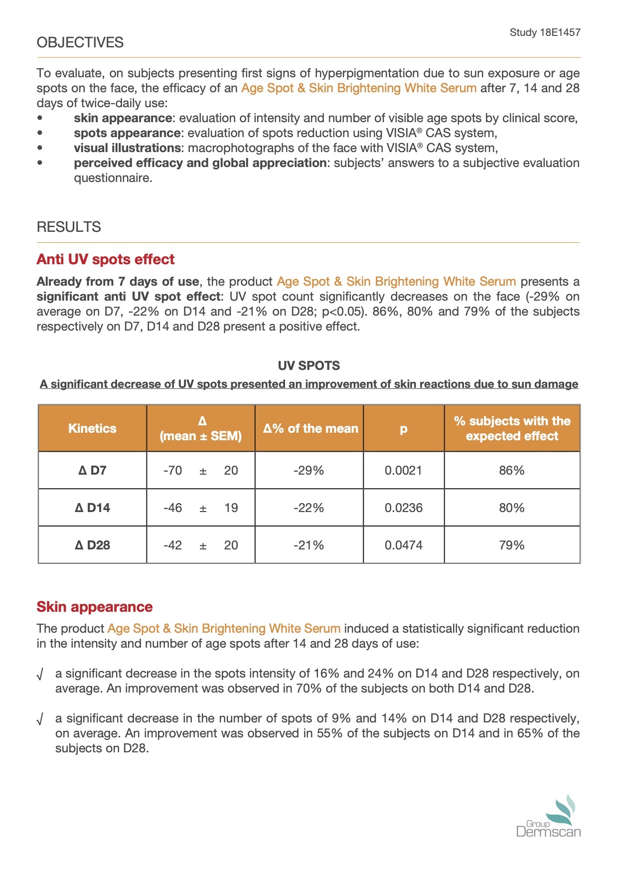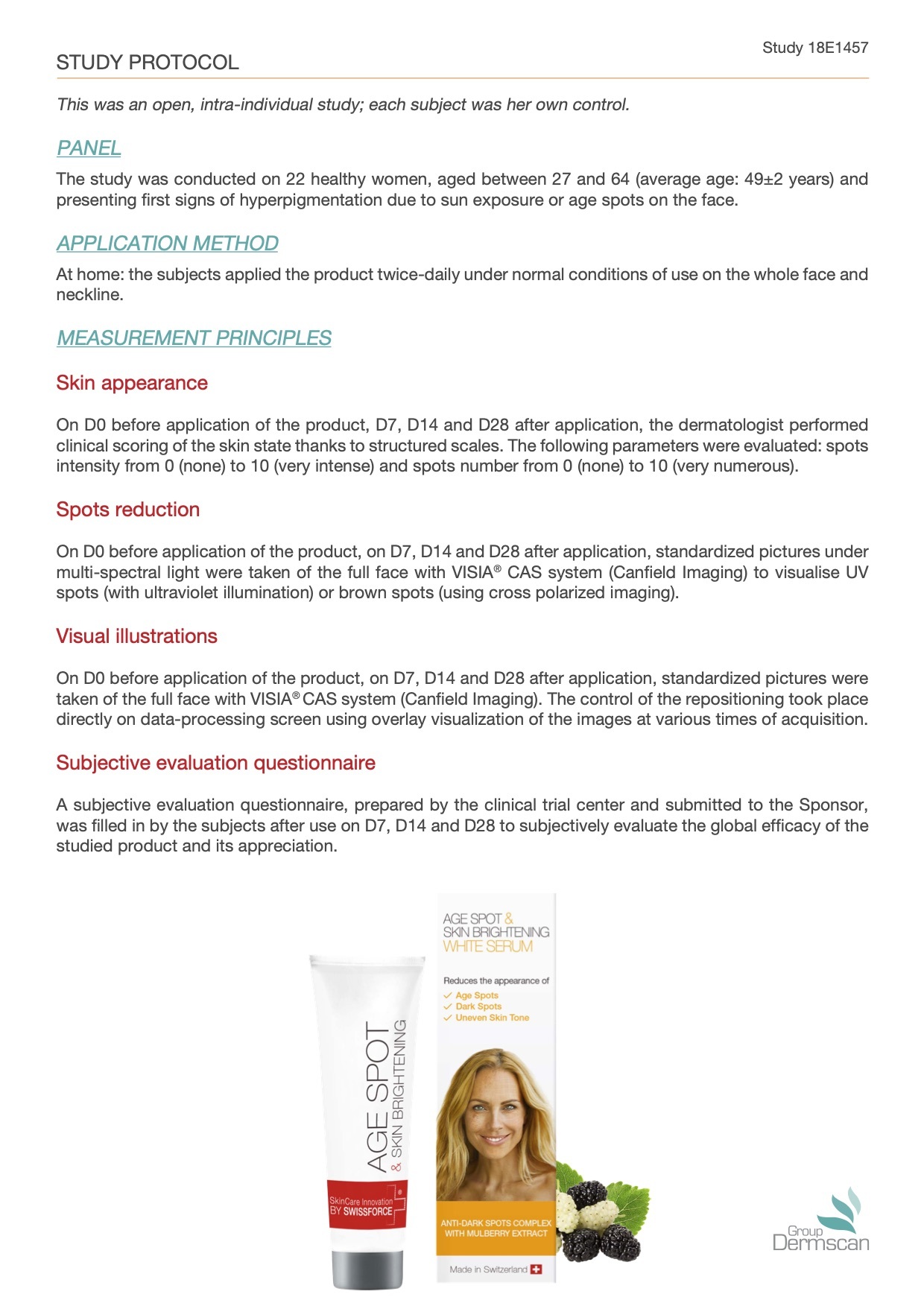 法國里昂專業化妝品臨床實驗室 Dermscan 臨床研究證實,SwissForce 希薇詩 臨床研究證實,SwissForce 希薇詩 阻黑靚白精華7日減少29%紫外線所造成的黑色素沈澱。